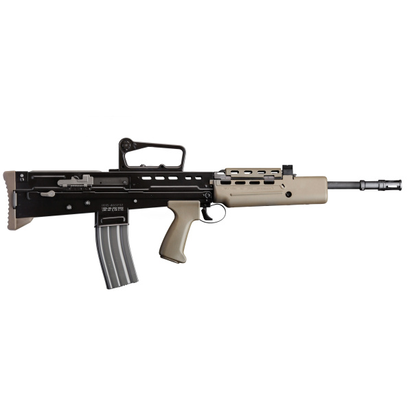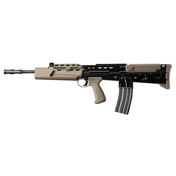 Förmodligen marknadens bästa replika på den brittiska arméns standard-karbin, L85. Vapnet är till största del tillverkat i metall. Plastdelarna är gjorda i stark nylonfiberkomposit och utrustat med batteri väger vapnet närmare 4kg vilket är nästan exakt som originalet. Det medföljande bärhandtaget är löstagbart för montering av sikte. Den har även en kullagrad gearbox (8mm), kraftfull motor och silverpläterade kablar. L85 är utrustad med ett elektriskt blowbacksystem som avger ett trevligt ”klonk” och ökad realism. Modellen behöver kompletteras med batteri (max 8,4V) och laddare. Vikt 3680g Totallängd 785mm Kaliber 6,0mm Mekanism Blowback Drivning EL Anslagsenergi 1,0J Piptyp Justerbar HopUp Piplängd 510mm Eldalternativ Semi & Full Auto. Batteri-teknik Ni-MH Batteri-spänning 8,4V Batteri-design Standard Batteri-kontakt Tamiya Stor kontakt Utgångshastighet 0,20g 100m/s Magasinkapacitet 450st Ammunitionsvikt 0,20g – 3,0gr Riktmedel Justerbart Drevkonstruktion Metall Gearbox Metall Motor 25000 rpm Hi-torque Konstruktion Metall/Komposit