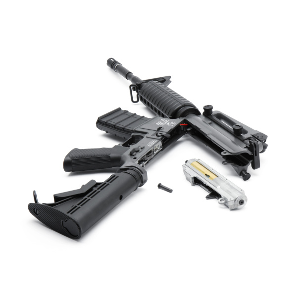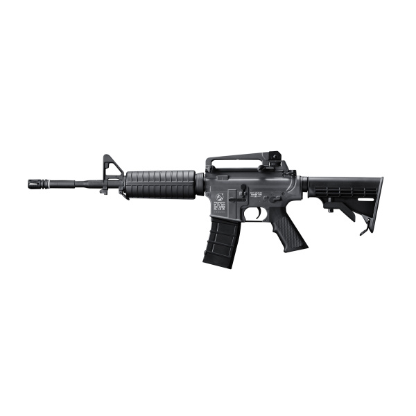 Prisvärd ”Sport Line”-version av ICS som inte kompromissar prestanda. De interna komponenterna är samma som sitter i dyrare ICS-modeller och den största skillnaden är att receivern och handtaget inte är i metall, utan en något lättare nylonfiberkomposit. Gearboxen är en mycket stark tvådelad modell som är enkel att underhålla. Genom att dra ut endast en sprint i receivern kan man dela lådan och enkelt byta t.ex. vapnets fjäder. M4:ans reservdelar och tillbehör, även kroppen, är kompatibel med övriga M4:a karbiner från ICS. Modellen är licenstillverkad under Colt och har autentiska logotyper. Leveras utan batteri och laddare. Modellen har en ”forward assist knob” som kan slacka vapnets fjäder. Funktionen kan förhindra att fjädern förvaras uppspänd, med förlorad effekt som följd. Vi rekommenderar att endast trycka på knappen i enkelskottsläge. Om ”Full auto” används, vrid till ”Single Shot” och avfyra några gånger innan fjädern slackas. (Detta för att inte skada pistongen) Vikt 2470g Längd ihopfälld 790mm Totallängd 880mm Kaliber 6,0mm Drivning EL Anslagsenergi 1,1J Piptyp HopUp Justerbar Piplängd 420mm Eldalternativ Semi & Full Auto. Batteri-spänning 8,4V & 9,6V Batteri-design Standard Batteri-kontakt Tamiya liten Utgångshastighet 0,20g 100m/s Magasinkapacitet 400st Ammunitionsvikt 0,20g – 3,0gr Kilspår Picatinny Riktmedel Justerbart Drevkonstruktion Metall Gearbox v2 (delad) Metall Motor Turbo 3000 Receiver Komposit Manual Ja, Engelsk Konstruktion Komposit