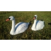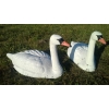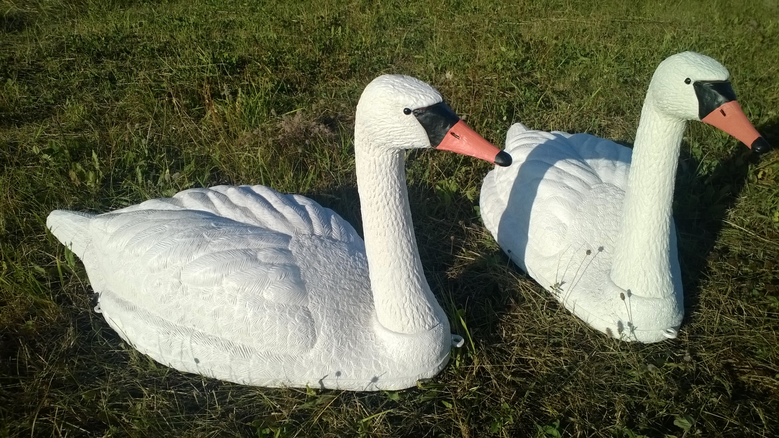 Svanarnas vita färg ger ett naturligt blickfång för gässen och signalerar att här är det säkert & tryggt att landa.