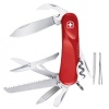Wenger Evolution 17 är en klassisk schweizisk armékniv i modern tappning. Fällkniven har 15 funktioner. Kniven väger 96.5 g och är 85 mm lång i hopfällt läge. Knivens funktioner: Flat screwdriver with safety lock system träsåg stjärnskruvmejsel kapsylöppnare Wire bender burköppnare nagelfil nagelpetare korkskruv brotsch tandpetare pincett nyckelring