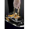 Beställningsvara. Ergonomiskt formad 7075-aluminium ram som ger ett naturligare steg och sparar kraft. Delad i topp och häl för att skona vrister, knä och höft vid ojämn terräng. Främre och bakre stegjärn i smidd aluminium där de främre ger ett djupare grepp vid varierande underlag. Främre stegjärnen är ledad för bättre kontroll och grepp i lutande underlag. Förbättrad stegjärn bak för bättre grepp vi lutande underlag. Hälplatta med stötdämpning och som ger bättre kontroll. Snabb bindning med enhandsgrepp och justerbar hälrem för att passa alla sko-storlekar. 80 % återvinningsbart material. BlitzTrac TM 3D-beklädning som är flexibel, punkterings- och rivtålig. 21″ upp till 80 kg, 25″ upp till 100 kg och 30″ över -100 kg. Storlek Upp till 80kg Mått 21″ (54cm)