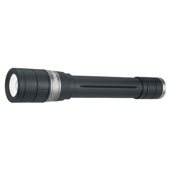 Denna snygga och tåliga ficklampa i anodiserat aluminium har en justerbar ljusstråle och har 40 % längre brinntid och 15 % längre effektiv räckvidd än sina närmaste konkurrenter. Den justerbara ljusstrålen ger full belysning i mitten (inget svart hål). Bakstycket med av/på-knapp har ett hål för fäst-rem. Drivs av 2st 1,5v AA-batterier! Vikt: 128g Totallängd: 160mm Lamptyp: LED Batterityp: 2st 1,5v AA