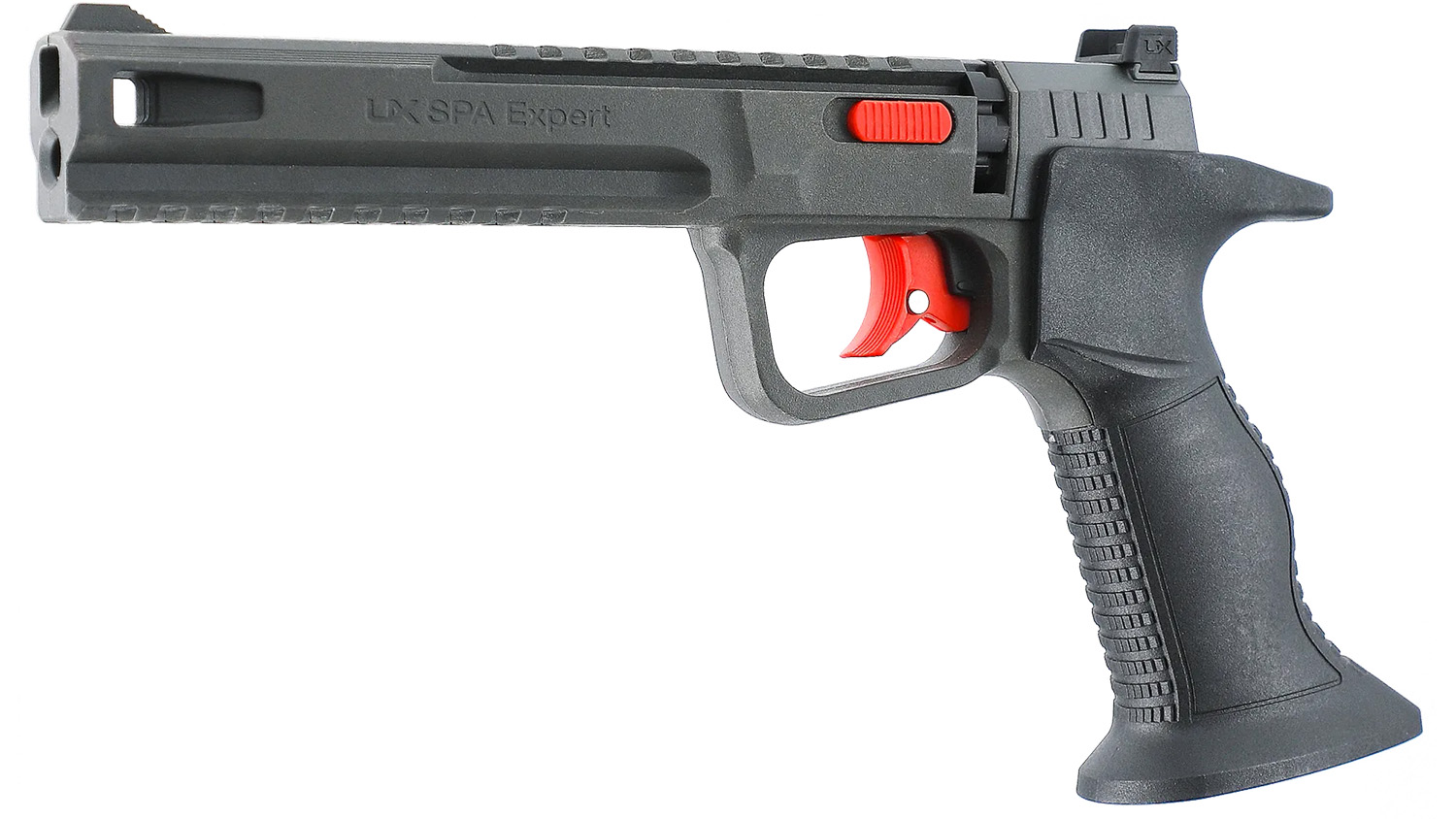 UX SPA Expert CO2 är toppmodellen i SPA-serien, driven av CO₂ med en 12 g patron i greppet och ett roterande 8 skotts magasin för 4,5 mm. Upp till 3 joule anslagsenergi och en 190 mm lång räfflad pipa utlovar UX SPA Expert precision i toppklass.