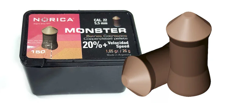 Norica Monster Diaboler 5,5mm/.22 är kopparplätterade diaboler med en specialdesign för en perfekt balans av tyngdpunkten, mycket exakt även på långa avstånd, lämpar sig mycket väl främst då så klart till licenspliktiga luftvapen!