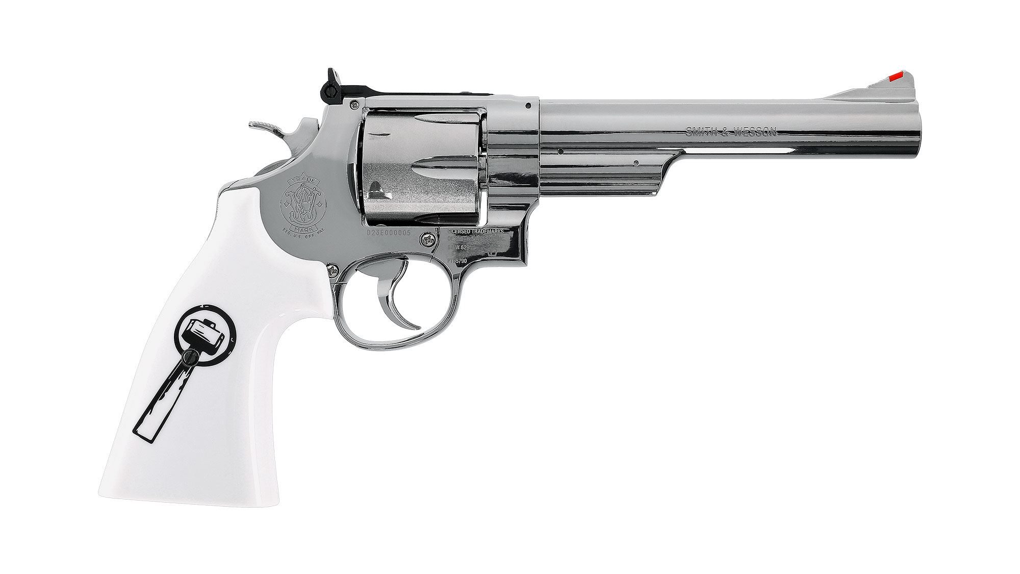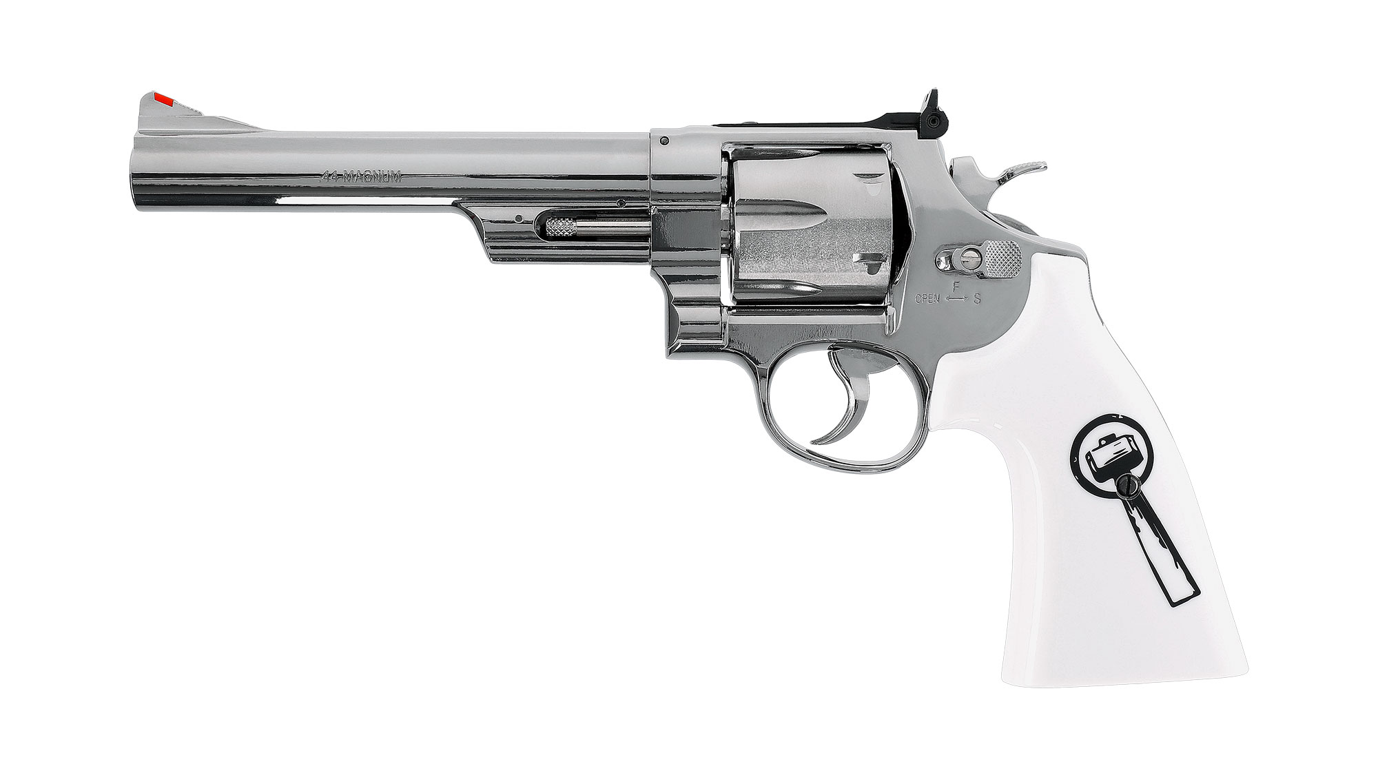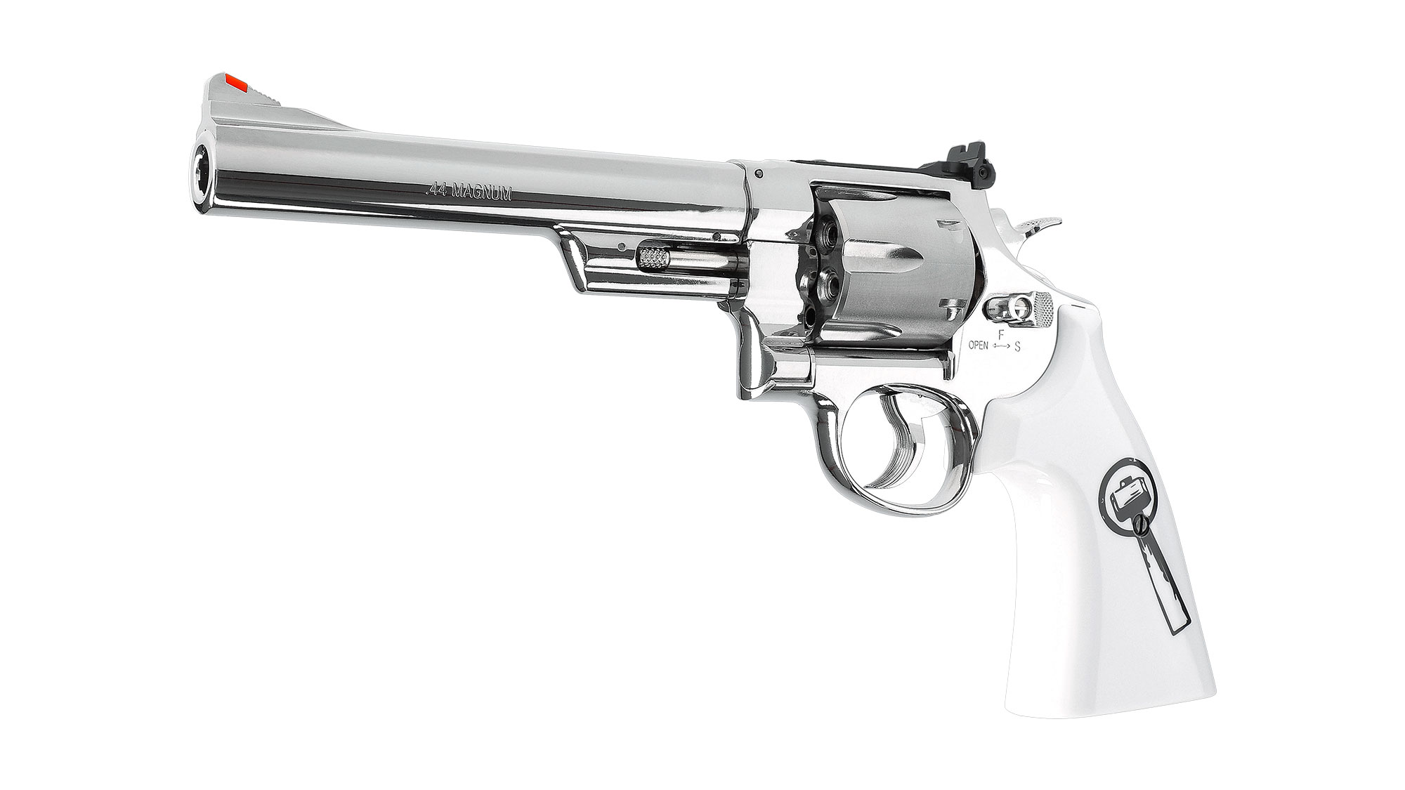 Smith&Wesson 629 Upplev kraften och elegansen hos den legendariska Smith & Wesson 629-revolvern i denna unika ”Trust Me” version. Med sin nickelplätering och elfenbensliknande grepplattor är den en syn att minnas. Inspirerad av en ikonisk TV-serie från 1980-talet kommer denna luftpistol att få ditt hjärta att slå snabbare.