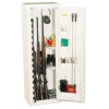 Skåpet levereras med två justerbara hyllor samt 5 förvaringslådor i dörren, bottenmatta samt vapenhållare för gevär.
