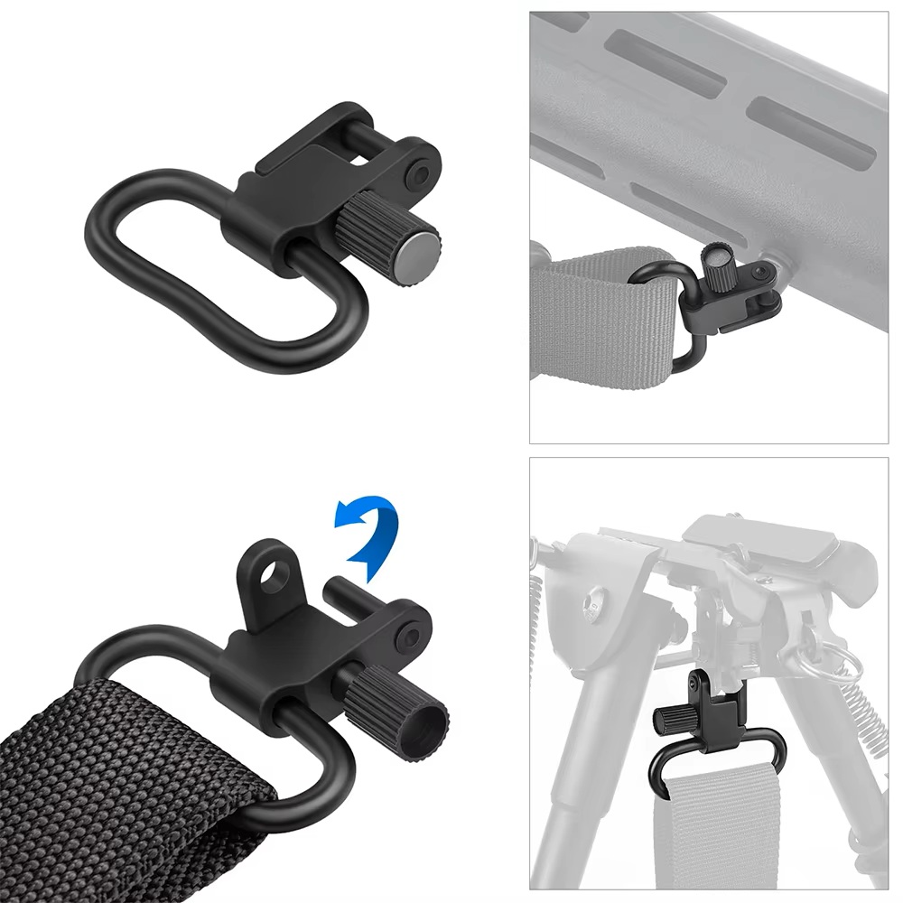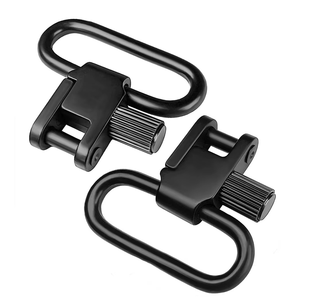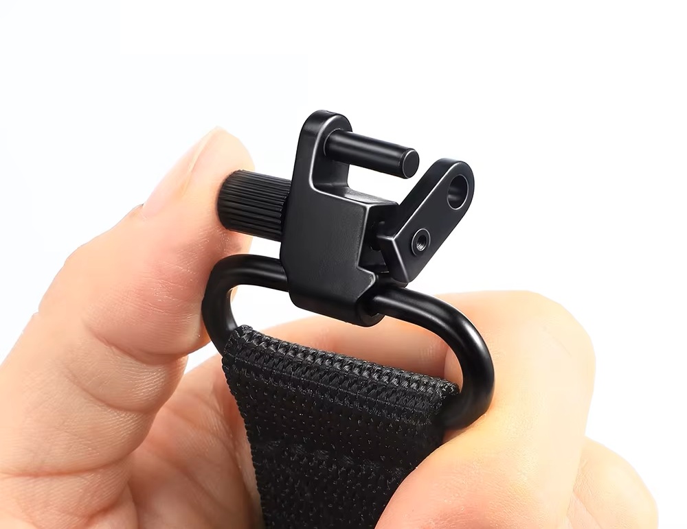 Rembyglarna har ett låssystem med en fjäderbelastad kolv och en räfflad gängad hylsa. Denna design säkerställer att din vapenrem sitter stadigt på plats och skyddar den från att oavsiktligt kunna lossa.