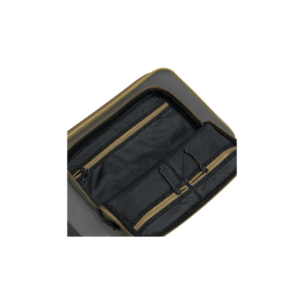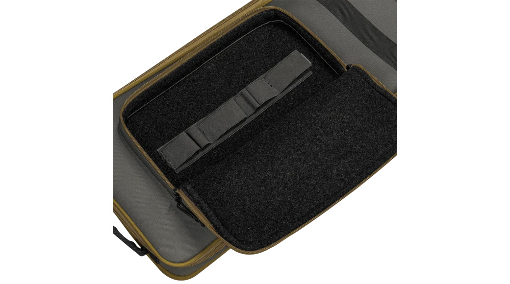 - Insidan, med en vadderad öglefodrad design, möjliggör flexibel placering av tillbehör med kardborre. Använd den för att säkert förvara din utrustning som magasin, batterier och andra väsentligheter för skjutbanan